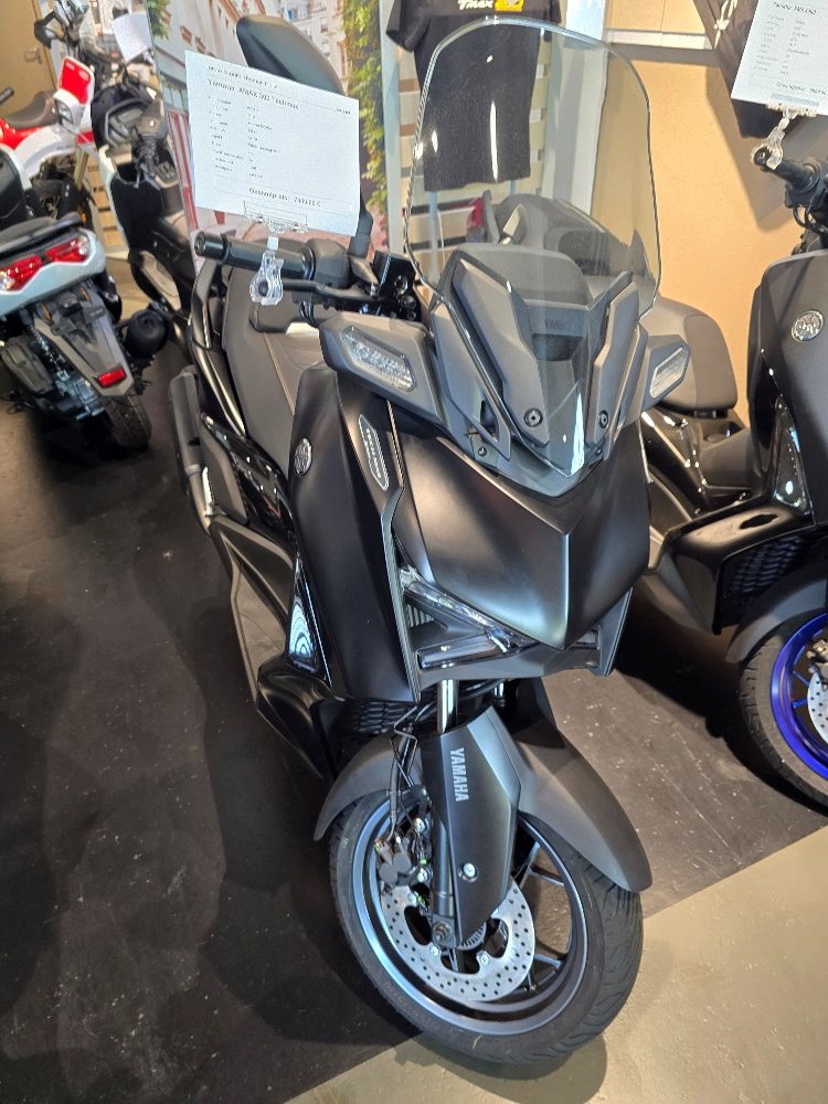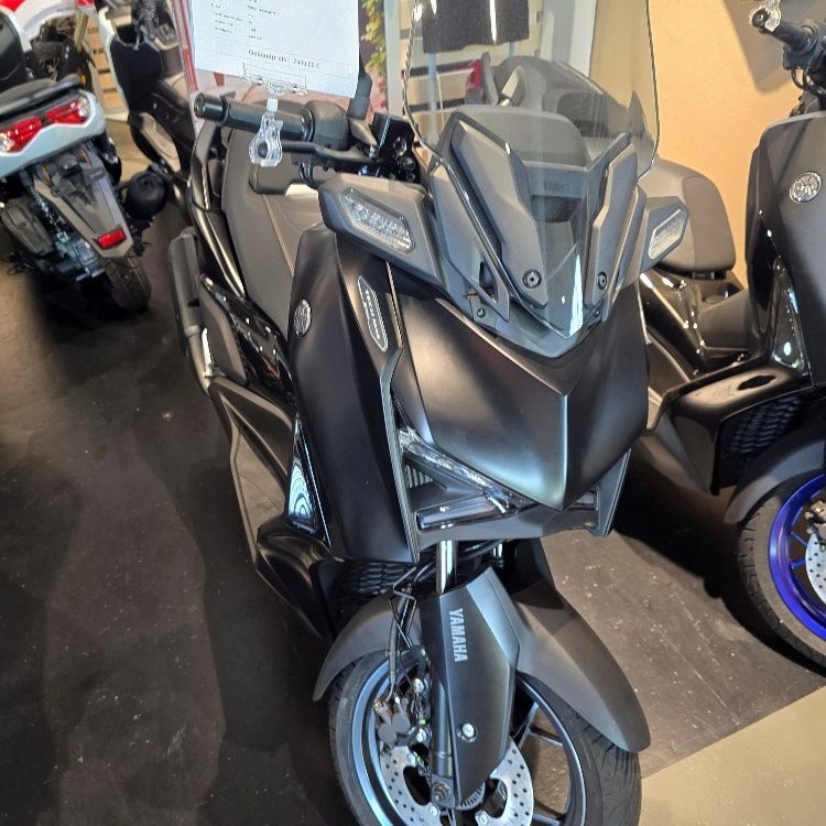 Angeboten wird ein Yamaha XMAX 300 Tech MAX aus dem Modelljahr 2024 mit Tageszulassung. In der exklusiven Farbvariante Tech Black.
