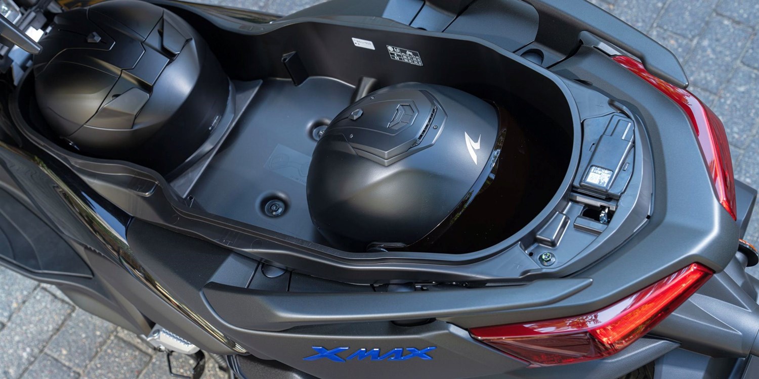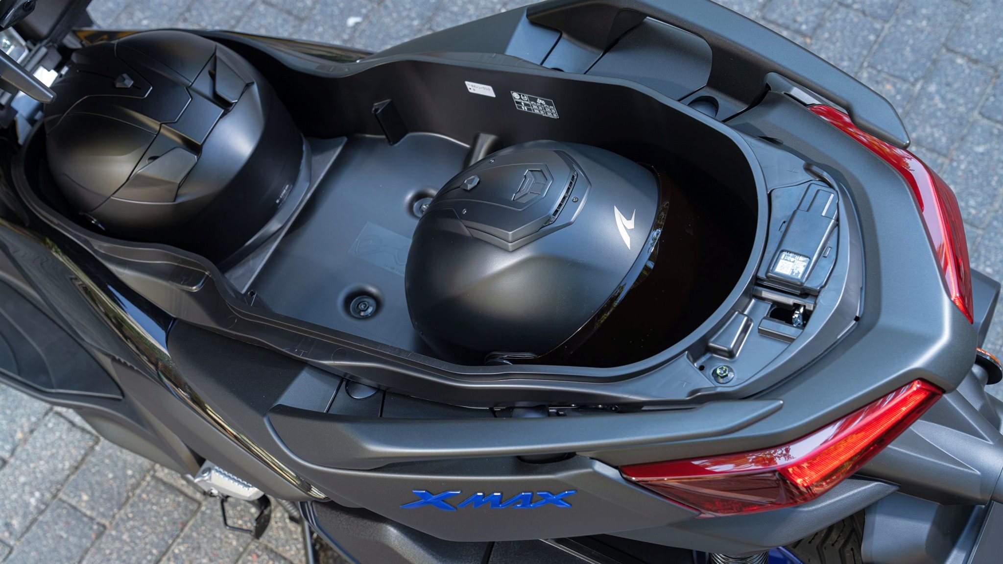 - Großzügiger Stauraum: Unter der Sitzbank befindet sich ein geräumiges Staufach, das Platz für zwei Integralhelme und weiteres Gepäck bietet.